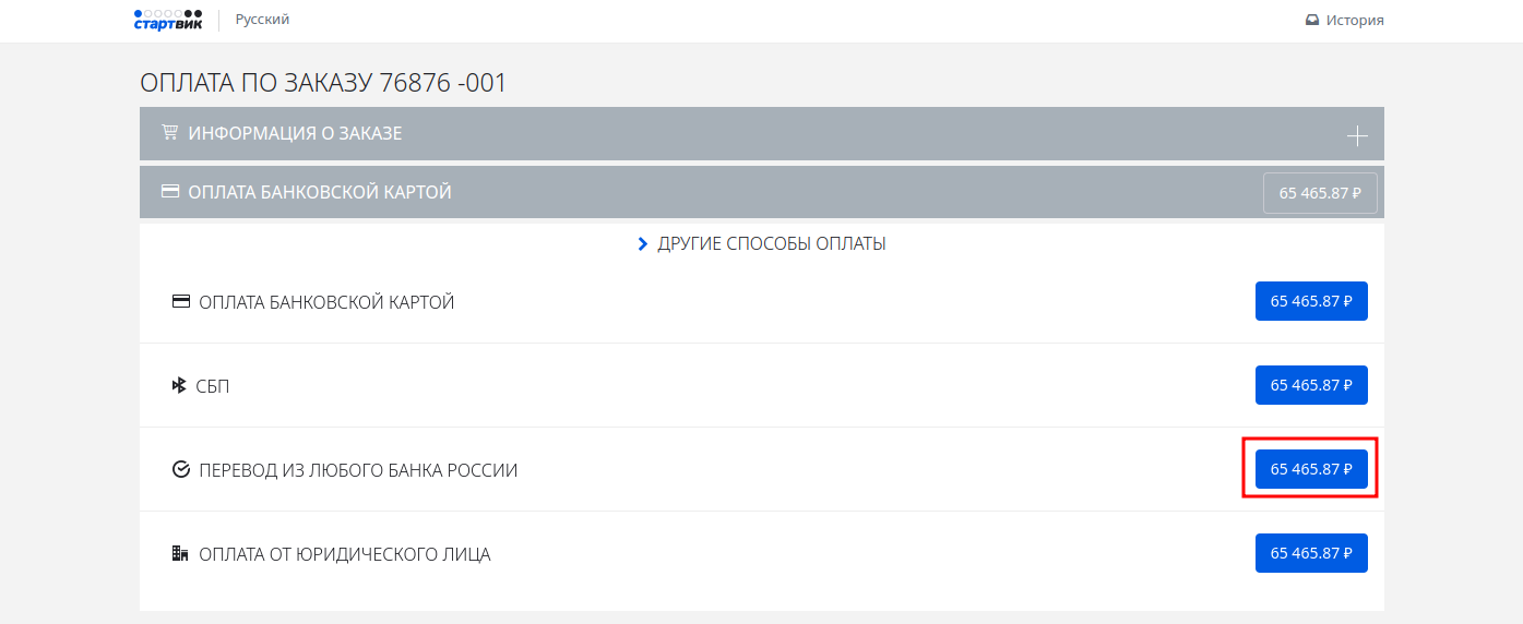 1. После оформления заказа на Стартвик, мы попадаем на страницу оплаты.