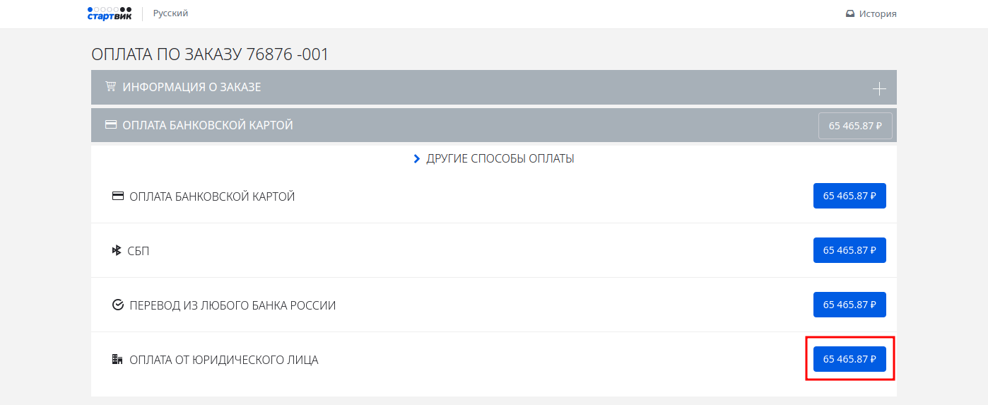 1. После оформления заказа на Стартвик, мы попадаем на страницу оплаты.