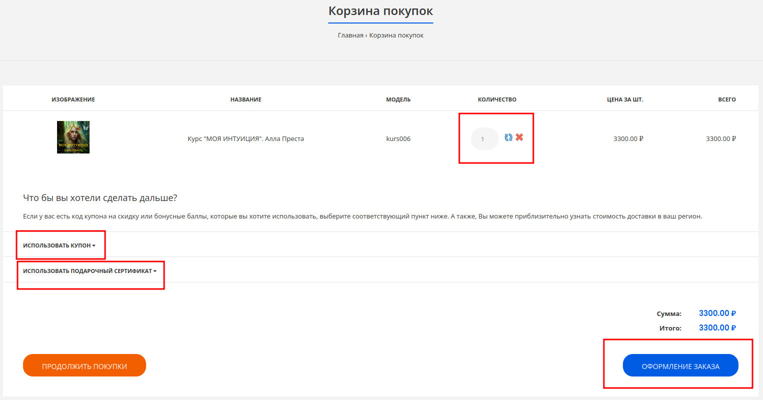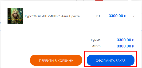 - Нажмите "Перейти в корзину". Проверьте наименование и количество товаров и нажмите кнопку "Оформление