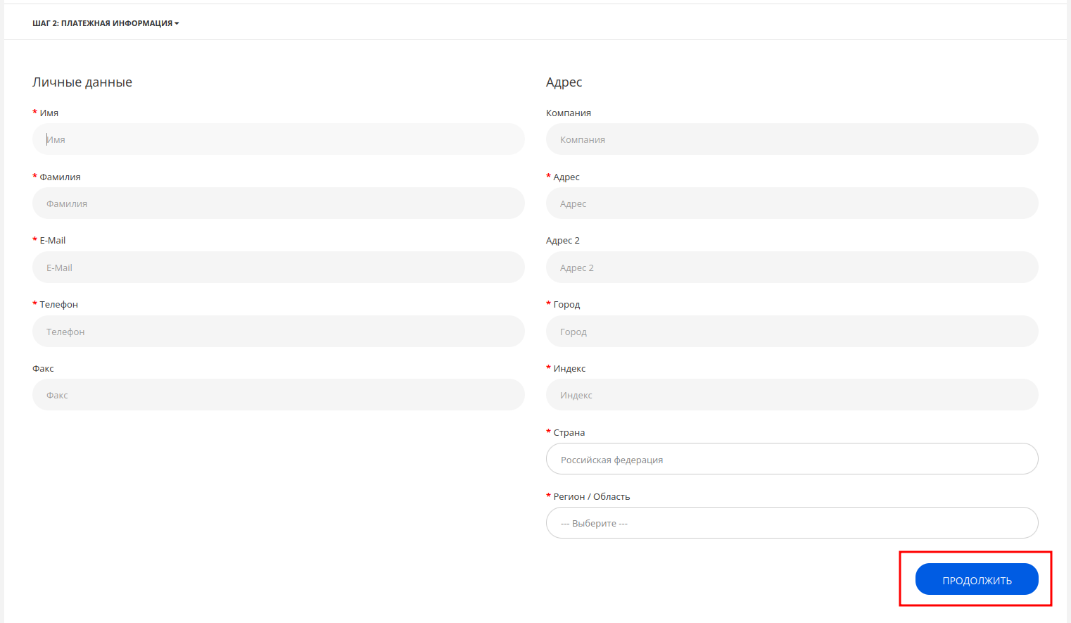 - В разделе "Платежная информация" укажите адрес, который будет отражен в отчетных документах. В разделе "Адрес