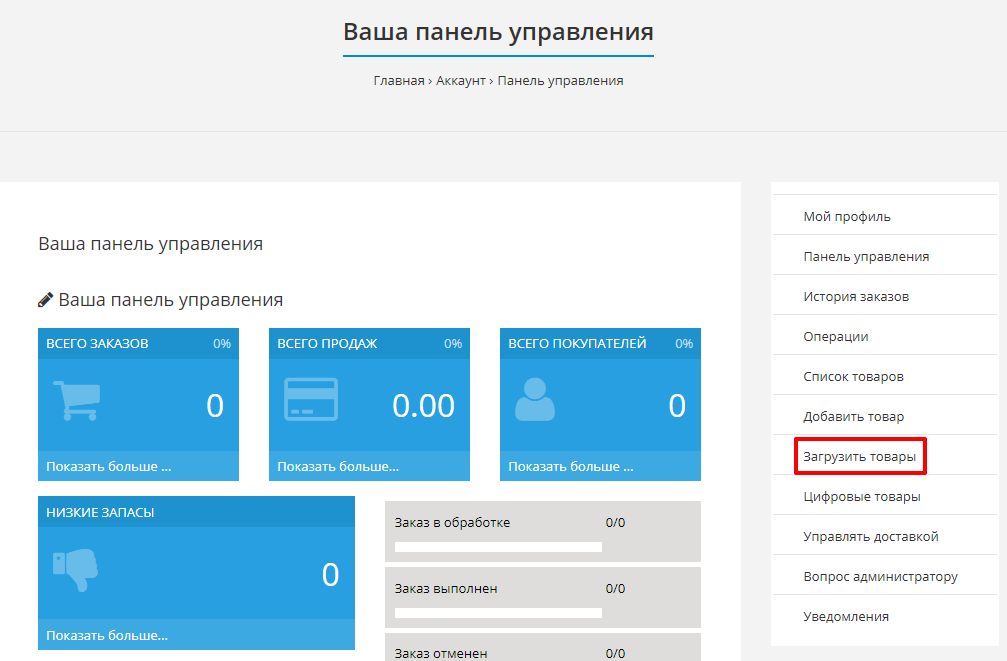 Войдите в свой аккаунт поставщика. В меню выберите пункт "Загрузить товары"